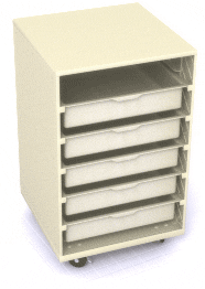 We think that a cutting/craft table should give back the floor area that it uses in storage space, don't you? For 20 square feet of floor space (44"x66"), you get back 55 cubic feet for storage of fabric, patterns, threads, notions, or other crafting supplies... and a very generous 44" x 66" cutting surface at a comfortable 36" working height. Each 22" x 22" structured resin molded module has 3" heavy-duty casters for true mobility. Join 6 units together to create the table shown below, or arrange fewer or more modules to suit your needs. Each module comes fully assembled and is easily attached to other units to create the work surface (and storage space) of your dreams. Now THAT'S a cutting table worth it's floor space!!